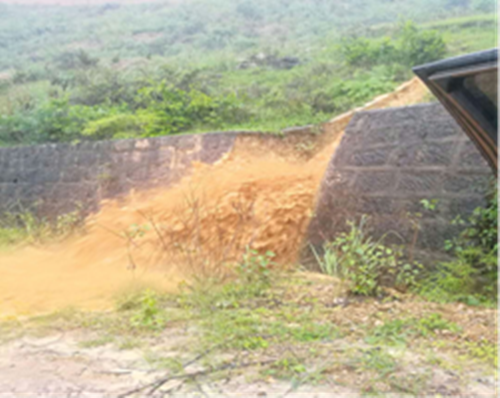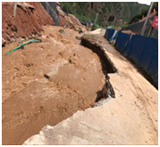 2018年7月13日上午,云南省保山市遭受強暴雨襲擊,頃刻間大雨如注。保山分公司礦山采場1840m運礦道路擋墻被沖垮一處,坍塌的石塊把道路下方的涵洞掩埋,運礦道路面臨被沖毀的危險。