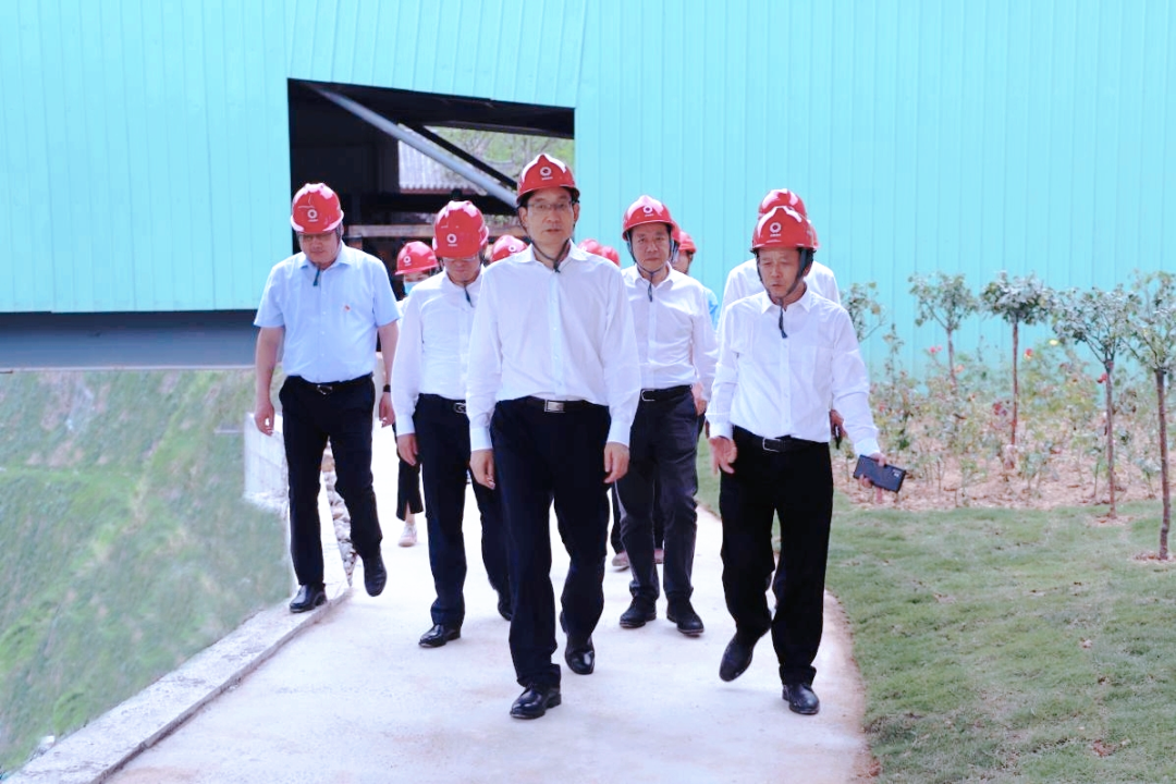 周育先一行率先赴九江瑞昌調(diào)研中建材新材料有限公司,聽取了華東材料黨委書記、總裁,中建材新材料董事長王盛偉關(guān)于瑞昌項(xiàng)目建設(shè)、智慧礦山、生產(chǎn)準(zhǔn)備等匯報(bào),并深入現(xiàn)場調(diào)研了礦山、骨料線、廊道建設(shè)情況。該項(xiàng)目自2021年3月開工,期間克服環(huán)保督察、特大洪水、新冠疫情等影響,在實(shí)際建設(shè)期不足一年的情況下,基本建成3000萬噸/年超大型礦山骨料生產(chǎn)基地,周育先對此給予充分肯定,并對項(xiàng)目綠色化、智能化、高端化、精細(xì)化水平給予高度評價(jià)。關(guān)于下一步工作,周育先提出三點(diǎn)要求:一是做好規(guī)劃設(shè)計(jì),通過信息化、數(shù)字化、智能化實(shí)現(xiàn)企業(yè)未來的高效運(yùn)營;二是加快項(xiàng)目建設(shè),早投產(chǎn)早見效;三是加強(qiáng)防疫與安全環(huán)保,做好礦山復(fù)綠工作,繼續(xù)穩(wěn)定綠色發(fā)展。